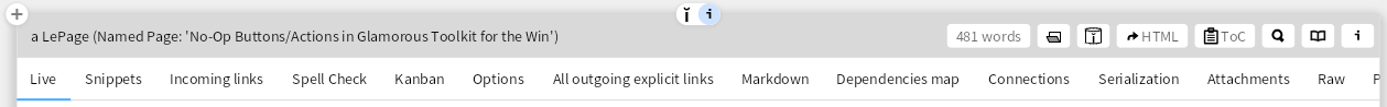 which already has many views is not worth it. When I click these buttons they do nothing (for now) and I'm okay with that. Wouldn't want to clutter an object/class's 'header' with a bunch of no-op buttons but in small doses, works for me and that is how you keep an environment moldable.